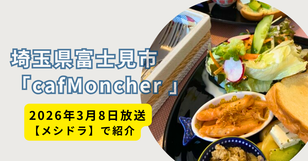 2026年3月8日に放送された「メシドラ」で紹介された「ボリュームあるのにヘルシー」と注目を集めた埼玉県富士見市「cafeMoncher (モンシェール)」さんを紹介しました。