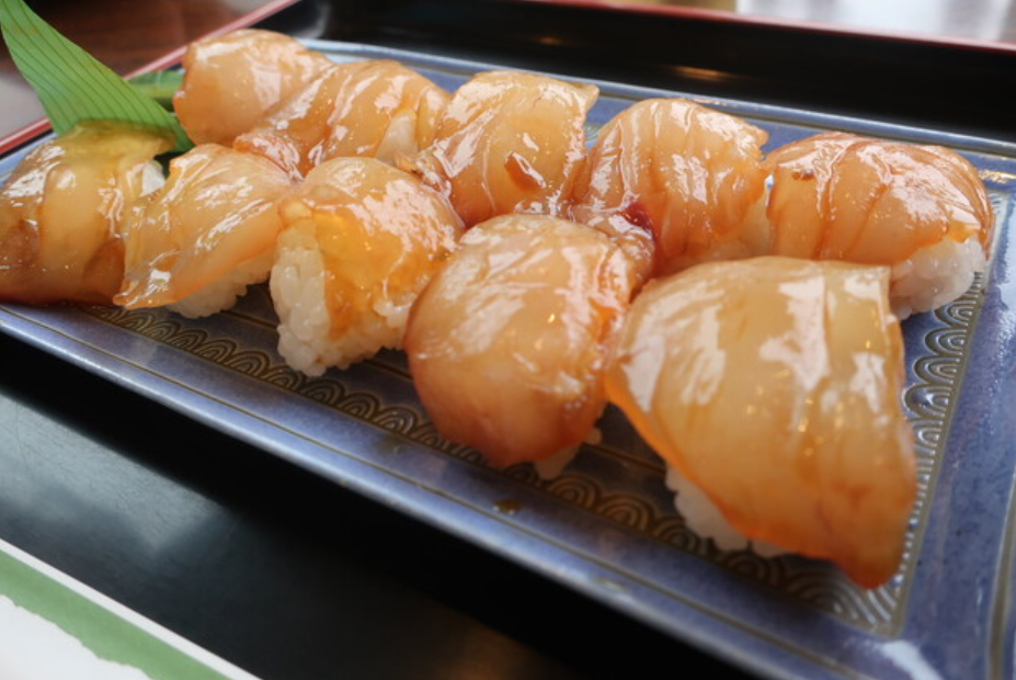 甘めの酢飯(または普通のご飯)にのせ、わさびの代わりに青唐辛子の辛みがアクセントになるのが特徴です。