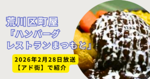 2026年2月28日放送「出没!アド街ック天国」で紹介された、荒川区町屋のお店の名前や場所だけでなく、メニューなんかも紹介していきますね!