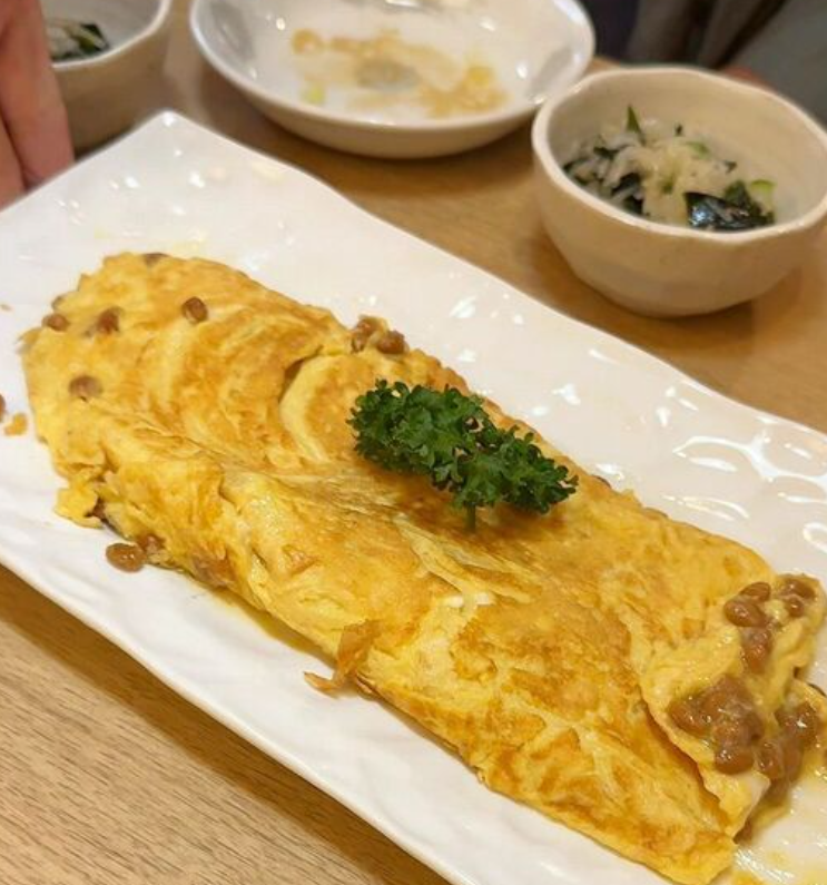 卵はふんわり柔らかく焼かれていて、納豆の粒々がごろごろ入ってるから食感も楽しい。