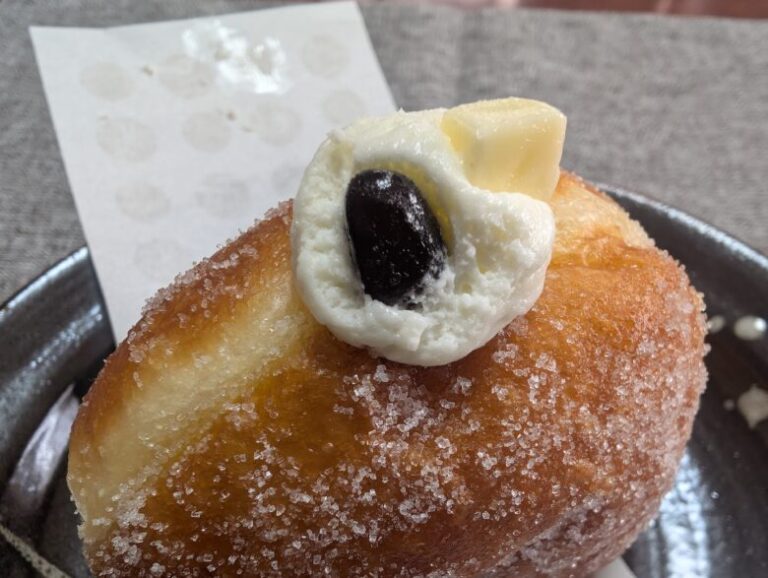 | ミックスシュガー | 290円 | てんさい糖と粉砂糖をまぶしたシンプルな定番。生地のふわとろ・もちもち食感を一番楽しめる。甘さ控えめで軽い。 |