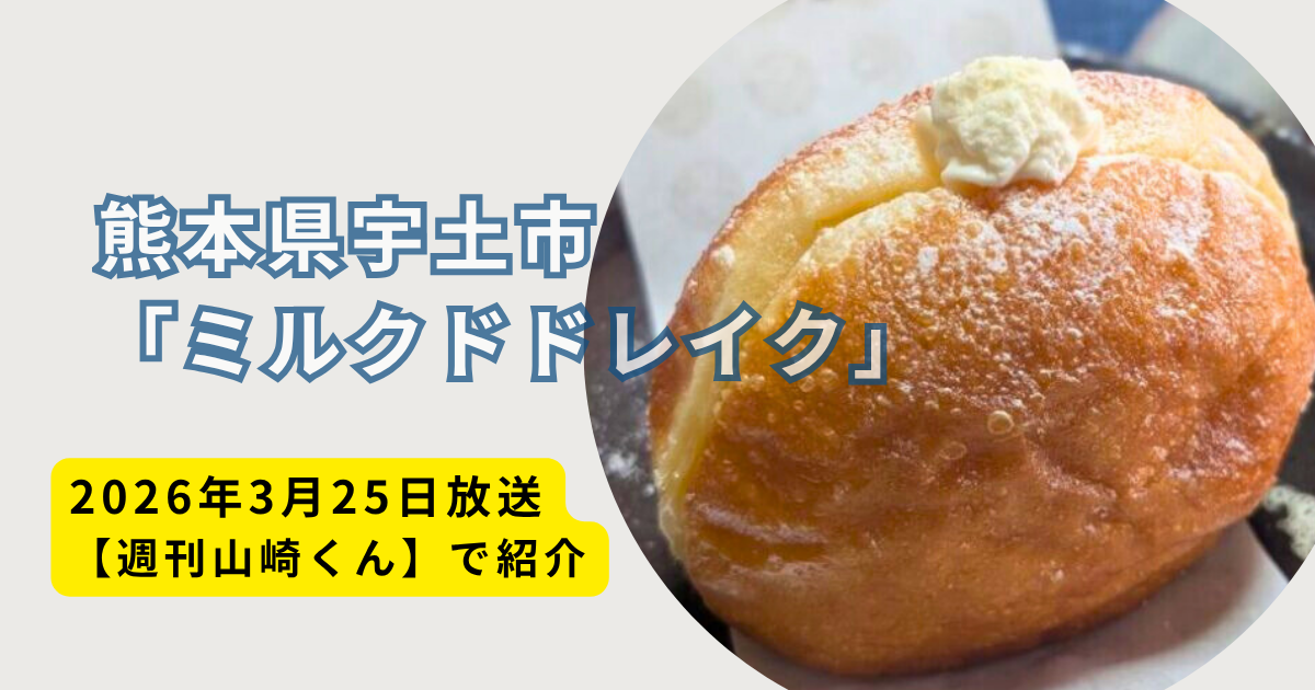 2026年3月25日に放送された「週刊山崎くん」で紹介された「外サクッ中トロトロ」「甘さ控えめで上品」と注目を集めた熊本県宇土市の「ミルクドドレイク」さんを紹介しました。