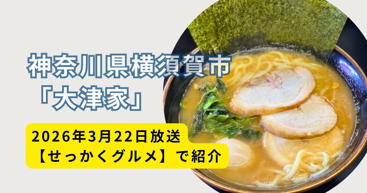 2026年3月22日に放送された「バナナマンのせっかくグルメ!!」で紹介された「横須賀の家系ではトップクラス」「安定して美味しい」と注目を集めた横須賀市の「大津家」さんを紹介しました。